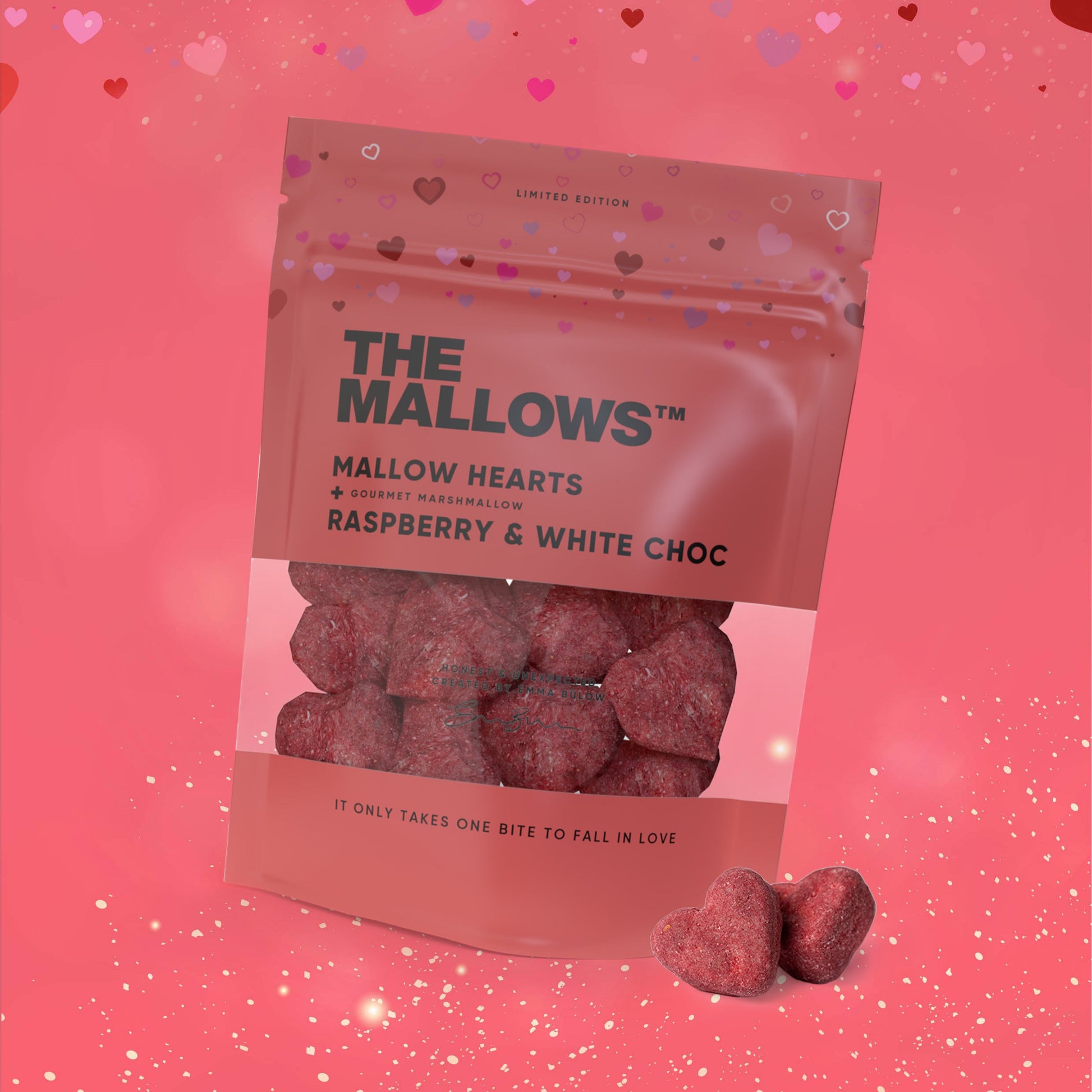MALLOW HEARTS – MARSHMALLOWS WITH WHITE CHOCOLATE & RASPBERRY 90G